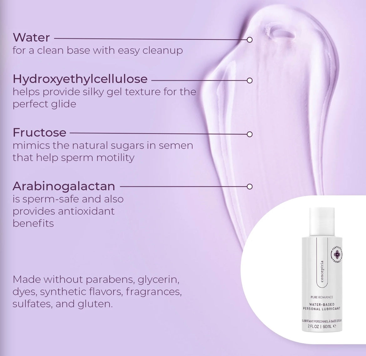 ● Water-based for a silky-smooth feel and glide that helps put the fun back in baby-making. It’s also easy to clean up and non-staining for clothes and sheets!