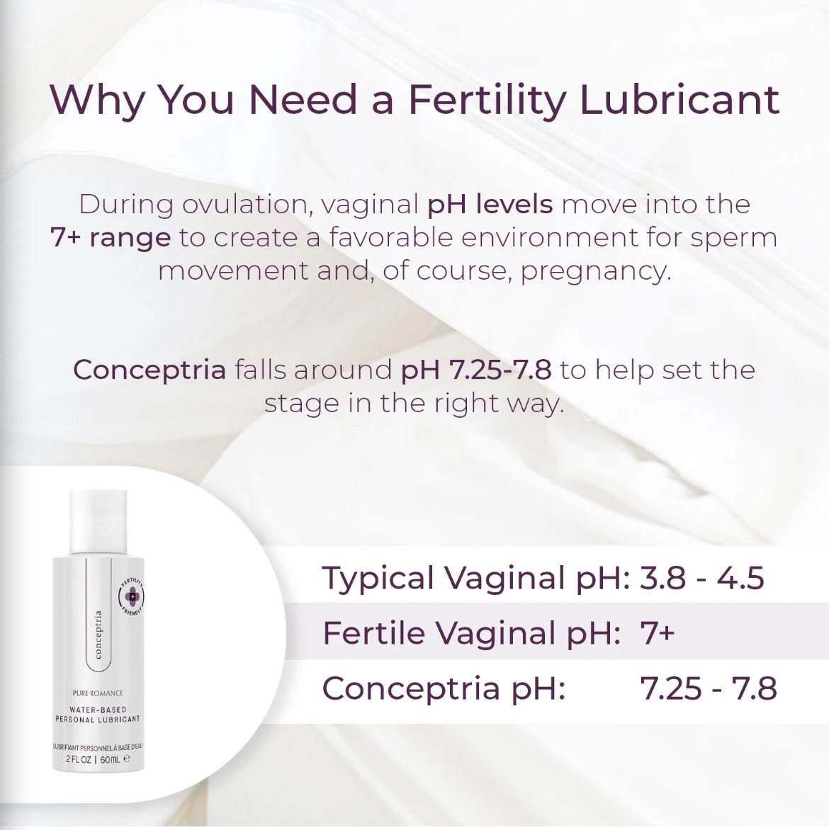 Trying to conceive? Shelve everything else and reach for Conceptria, a fertility-friendly lubricant that helps set the stage for conception and puts the fun back in intimacy. Because let’s face it, sex shouldn’t feel like work!