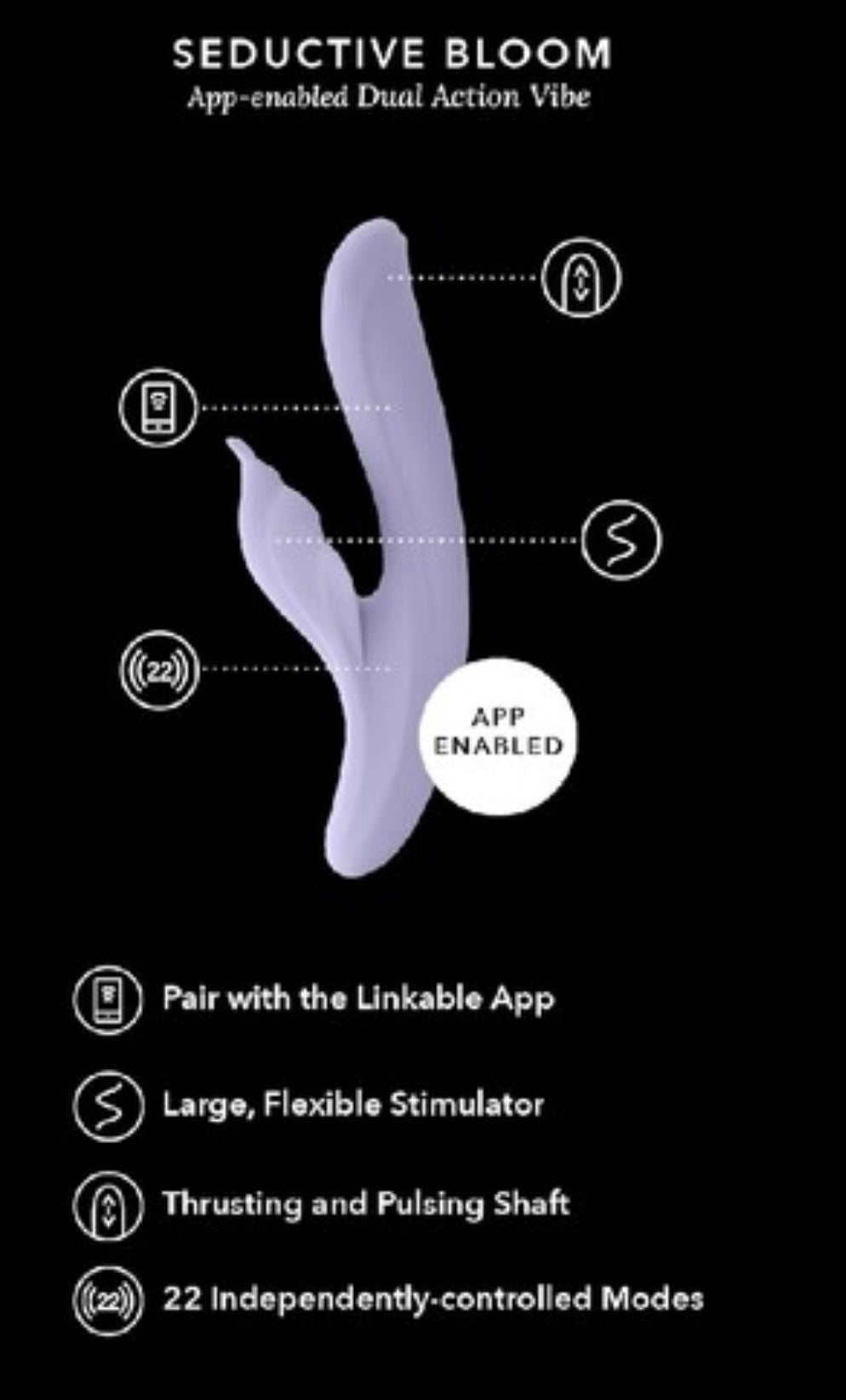 • Includes: Seductive Bloom App-Enabled Massager, Directions Card, USB Charging Cord